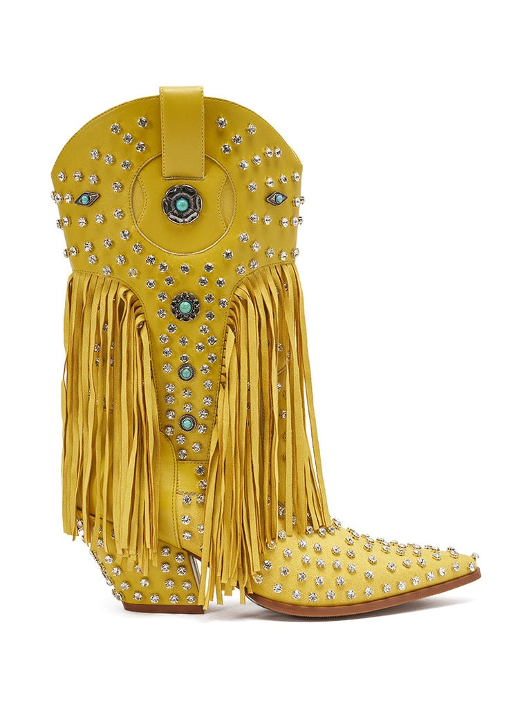 YELLOW RHINESTONE EMBELLISHED WESTERN BOOTIE